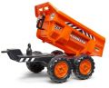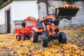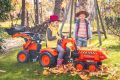Traktor šlapací Kubota M7171 oranžový s přední i zadní funkční lžící a čtyřkolovým přívěsem, otočným sedadlem, zvedací kapotou, a klaksonem. Z vysoce odolného a kvalitního plastu. Velikost 162×42×53 cm Věk 2–5 let. Všechny traktory Falk jsou testovány na 50kg – dle požadavků evropských norem. Vyrobeno ve Francii.