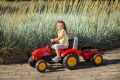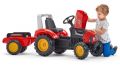 Traktor šlapací Supercharger červený s dvoukolovým valníkem. Volant