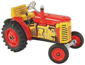 Pohon zajišťuje mechanický pérový strojek natahovaný klíčkem. Traktor má čtyřrychlostní převodovku. Disponuje třemi rozdílnými rychlostmi vpřed, zpátečkou a neutrálem. Je rovněž vybaven ruční brzdou. Přední náprava je řiditelná volantem.