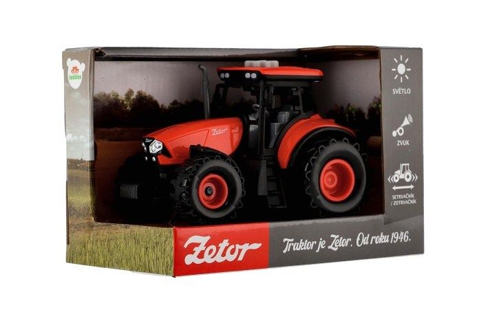 Traktor Zetor plast 9x14cm na setrvačník na bat. se světlem se zvukem v krabici 18x12x10,5