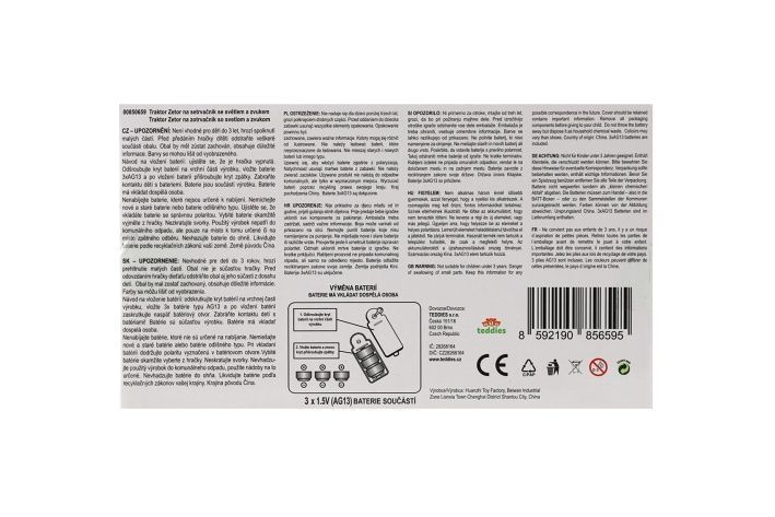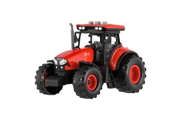 Krásný model zemědělského traktoru Zetor s dlouholetou tradicí, kterou musí milovat snad každý. Vyrazte na pole, jako správný farmář s pořádným traktorem se světlem a zvukem! Zmáčkněte tlačítko a uslyšíte zvuk couvání, druhé tlačítko zatroubí a třetí startuje motor. Traktor je na setrvačník. Traktor zajisté okouzlí každého milovníka traktorů. Hračka je na baterie 3x AG13, které jsou součástí balení.
