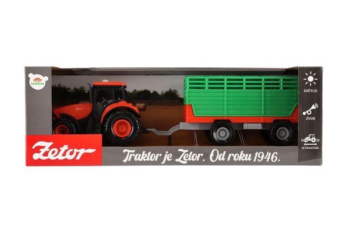Traktor Zetor s vlekem plast 36cm na setrvačník na bat. se světlem se zvukem v krabici