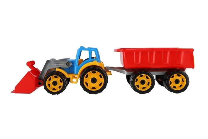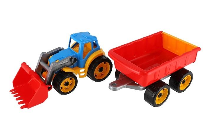 Barevný traktor s vlekem a lžící je vhodný pro každého malého zemědělce a je vyroben z kvalitního a odolného plastu. Užijte si spoustu zábavy s tímto traktorem také na pískovišti, který děti zabaví na dlouhé hodiny. Můžete převážet náklad z jedné strany pískoviště na druhou.