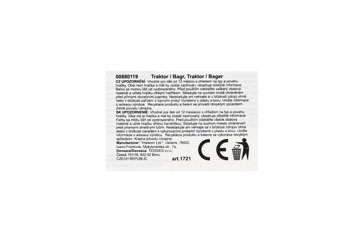 Traktor/nakladač/bagr se lžící plast na volný chod 2 barvy 17x37x17cm 12m+