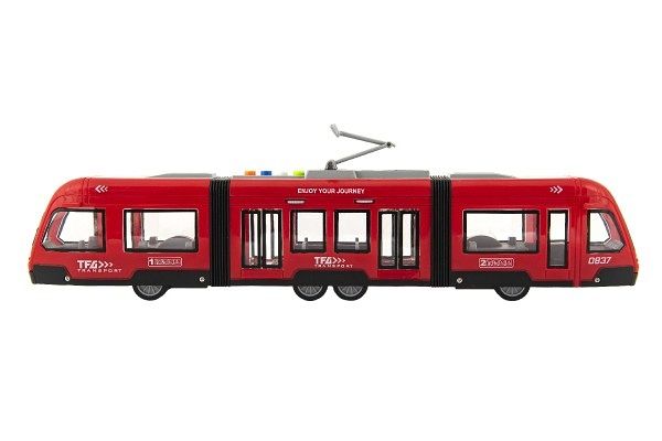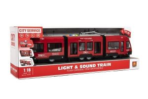 Být řidičem tramvaje není žádná legrace. Dopravit cestující v pořádku a včas na místo je zodpovědný úkol. Tak nastartuj a jeď! Plastová tramvaj v měřítku 1:16 jezdí na setrvačník a vydává zvukové i světelné efekty. Baterie 3x AG13 jsou součástí balení.