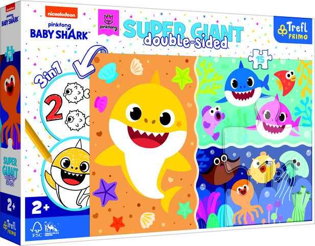 Tři hry v jednom produktu! Puzzle s 15 velmi velkými dílky pro nejmenší děti (od 2 let). Na zadní straně puzzle jsou dvě hry – omalovánka a jednoduchá hra s vybarvovacími prvky.
