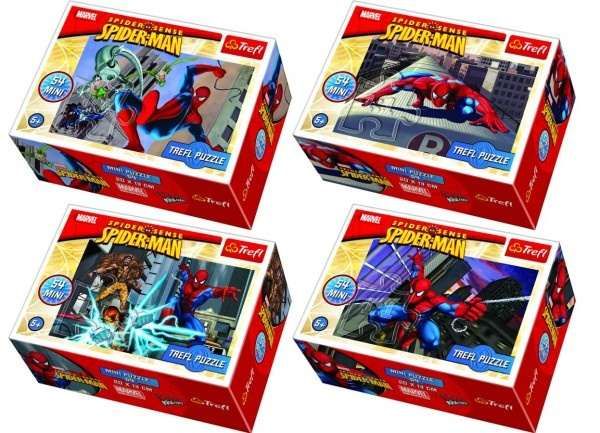 Mini dětské puzzle ve čtyřech druzích s motivy dětského hrdiny Spidermana.