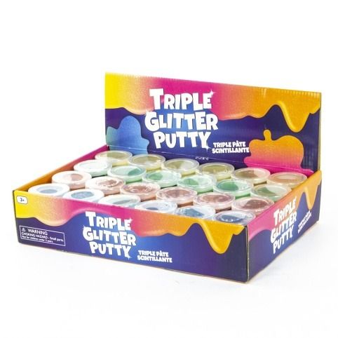 Zábava ve třech barvách! Triple Colour Putty je měkká, tvárná a elastická hmota, která spojuje tři barevné tóny v jednom kelímku. Děti si ji mohou mačkat, tvarovat, natahovat nebo míchat barvy dohromady – ideální pro smyslové hraní a rozvoj kreativity.