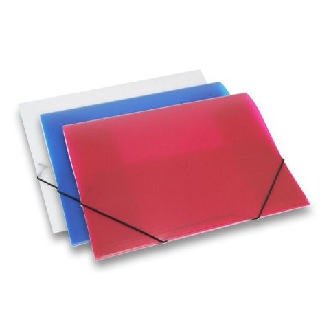 3chlopňové spisové desky s uzavírací gumičkou. Vyrobené z pevného transparentního polypropylenu tloušťky 400 mikronů. Na dokumenty A4.