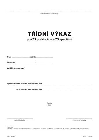 Třídní výkaz pro ZŠ praktickou a ZŠ speciální, sešit A4, 32 str.