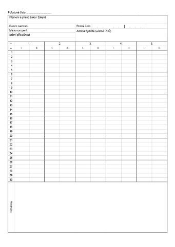 Třídní výkaz žáka (podle žáků ve třídě )