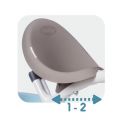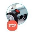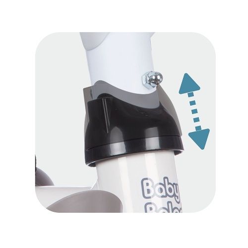 Kovový rám, tichá kolečka, řídící tyč s taškou, stříška proti sluníčku, opěrka hlavy, ochranný rám, brzda, klakson, opěrky nohou. Rozměry: 68x101x52 cm.