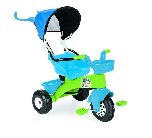 Tříkolka Star s vodící tyčí – s košíkem. Na rukojeti ovládání šlapek, takže díte nemůže šlapat bez povolení rodičů. Maximální nosnost 35 kg.