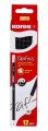 Grafitová tužka se silnou o odolnou tuhou. Vysoce kvalitní lipové dřevo pro snadné ořezávání. Speciální tuha pro jemné a pohodlné psaní. Tvrdost 2 = HB. V elegantním designu matné černé. Ergonomický trojhranný tvar. S bílou pryží.