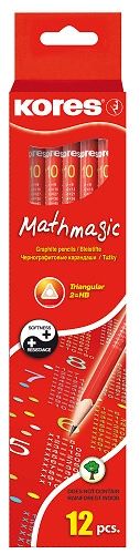 KORES Trojhranná obyč. tužka Mathmagic, 2 = HB, bílá pryž, cena za 1 ks