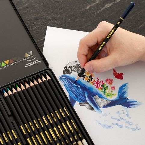 Sada 24 kusů prémiových trojhranných pastelek Kores Kolores Selection určena pro umělce.