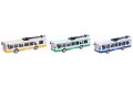 Kovový trolejbus na setrvačník. Světelné a zvukové efekty. Velikost 16 cm. 3xAG13 baterie součástí. 3 varianty - zelená, modrá, žlutá.