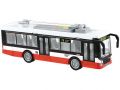 Trolejbus městské hromadné dopravy na setrvačník s českým hlasem a světelnými doplňky. Trolejbus přehrává tato hlášení: Hlavní nádraží, příští zastávka Městské divadlo. Městské divadlo, příští zastávka Zoologická zahrada. Zoologická zahrada, konečná stanice. Prosíme všechny cestující aby vystoupili. Vyčkáváme na příjezd navazujícího spoje. Klíčové vlastnosti: autobus hlásí stanice, český design známý z našich měst, pohon na setrvačník, světelné doplňky. Hračka je určena pro děti 3+. Rozměr hračky je 28 cm. Materiál hračky je plast. Balení hračky je open box. Produkt je určený pro kluky. Ke zprovoznění produktu jsou potřeba 3 AG13 baterie. Baterie jsou součástí balení.