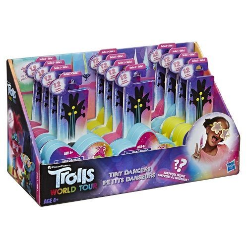 Malé figurky Tiny Dancers, které tančí a natřásají se, jsou připraveny předvést, co dovedou! Připevněte je na přibalený prsten nebo sponu do vlasů a pak je roztančete! Nebo je nasaďte na náramky, náhrdelníky či jiné doplňky (prodáváno samostatně, podle dostupnosti) pro více způsobí, jak je nosit a hrát si s nimi. Zabaleno v jedinečné zaslepené krabici, která zároveň slouží jako dotyčnou postavou inspirované sluneční brýle pro více zábavy! Kolekce zahrnuje 4 vlny 12 různých postav z Trolls World Tour. Prodáváno samostatně.