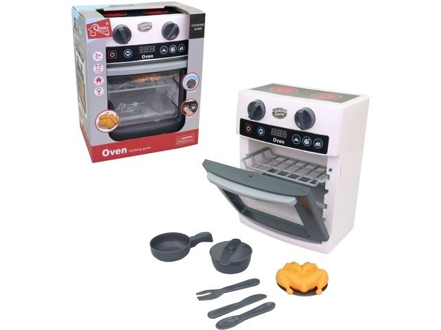 Trouba se sporákem a příslušenstvím (hrnce, talíř, příbor). Správná hospodyňka by měla mít i správné doplňky. S troubou na baterie může malá pomocnice/pomocník vykouzlit dobré jídlo pro celou rodinu. Pro větší zážitek z hry má trouba světlo a vydává zvuk. Rozměr produktu 20 x 14 x 25 cm. Světlo a zvuk. Materiál: plast. Rozměr produktu 20 x 14 x 25 cm. Baterie 3 x AA 1,5 V nejsou součástí produktu. Doporučený věk 3+.