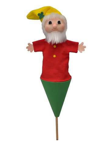 Textilní kornoutový maňásek, ovládaný dřevěnou tyčkou, kterou schováte celou postavičku do kornoutu. Hračka i dekorace.