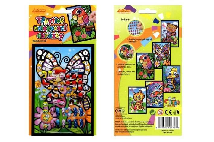 Třpytivý nalepovací obrázek 15x10cm asst v sáčku 48 ks v boxu