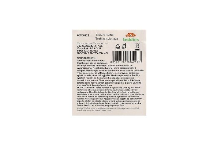 Trubice svítící pěna 47cm na baterie se světlem v sáčku