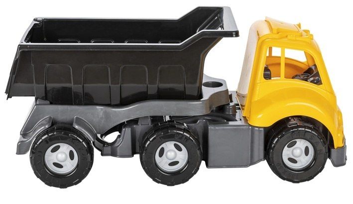 Plastové auto s návěsem,otočný kloub,určený pro věkovou skupinu od 3 let,nosnost korby je 50kg nákladu.Truck je dlouhý 77cm.