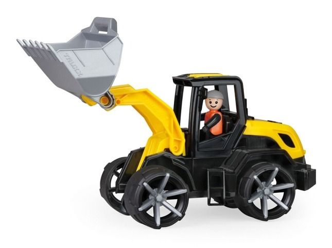Truxx 2 nakladač z kvalitního plastu a velmi pevnou stavbou. Plně mechanicky funkční. Obsahuje odklopitelnou kabinu s aktivním panáčkem. Pogumovaná kola s tichým chodem