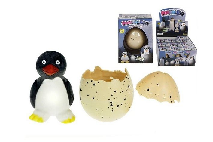 Vejce Tučňák,které vložíte do vody a po 12-24 hod vajíčko popraská. Po 48 hod se z vajíčka vyklube malý tučńák.