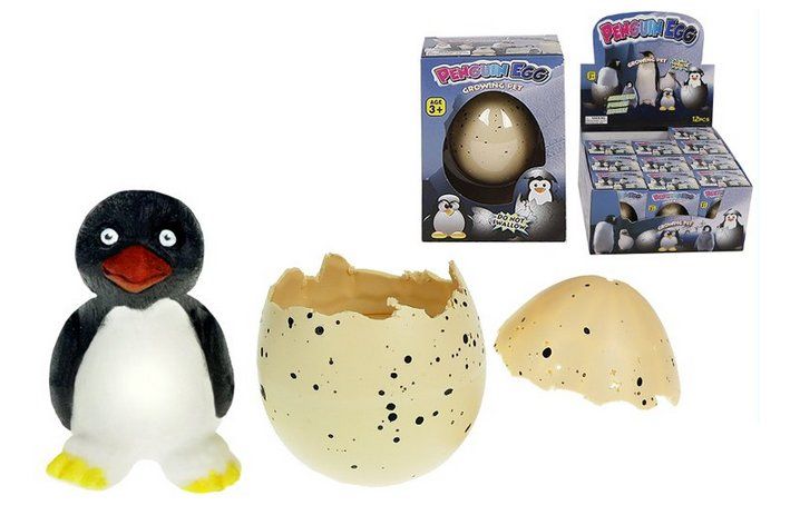 Vejce Tučňák,které vložíte do vody a po 12-24 hod vajíčko popraská. Po 48 hod se z vajíčka vyklube malý tučńák.