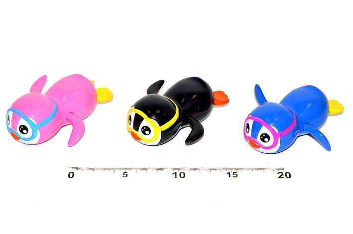 Tučňák do vody na natažení. Délka 12 cm. Display box 6 ks. 3 varianty - růžová, černá, modrá.