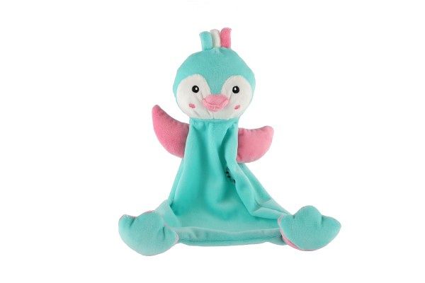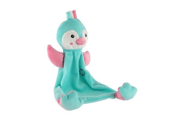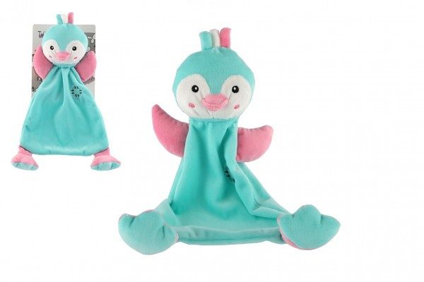 Tučňák usínáček chrastítko plyš 33cm tyrkysový na kartě v sáčku 0+