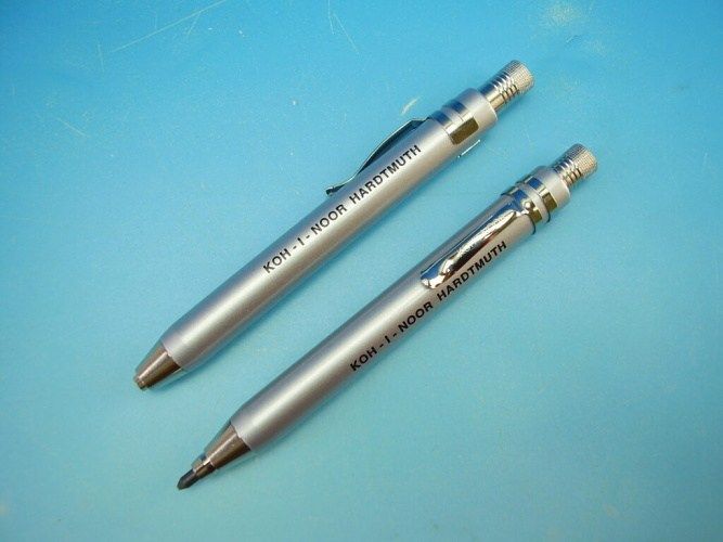 Tužka mechanická 3,2 5358 stříbrná. Tužka mechanická padací s tuhou o průměru 3,2 mm, kovová, je určená pro běžné psaní i kreslení. Tuha se posunuje stisknutím knoflíku v nakloněné poloze tužky, tím dojde k otevření kleštiny a vysunutí tuhy. V knoflíku je umístěno hrotítko, po odšroubování knoflíku lze hrotit tuhu. Plášť tužky stříbrné barvy je kruhového profilu pr. 12,3 mm, na plášti klip. Skupinové balení tužky je po 20 ks v kartonové krabičce, tužky jsou proloženy kloboukovým papírem.