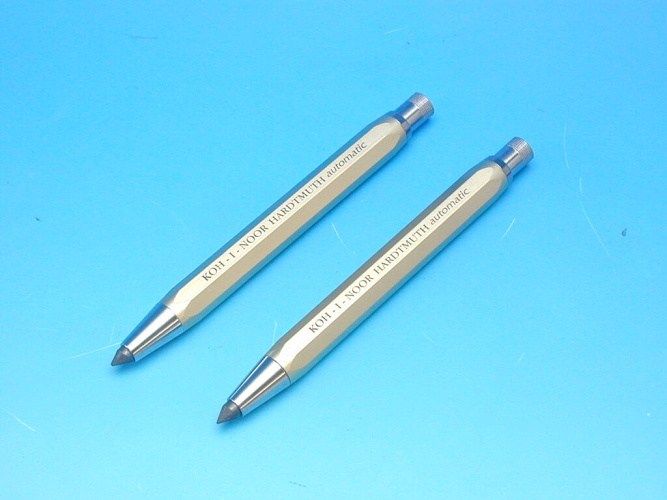 Tužka automatická 5,6 5640 zlatá. Tužka automatická, kovová, je určena pro běžné psaní a kreslení tuhou pr. 5,6 mm. Tuha se posunuje stisknutím knoflíku hrotítka v jakékoli poloze tužky, tím dojde k otevření kleštiny a vysunutí tuhy. V knoflíku je umístěno hrotítko, po odšroubování knoflíku lze hrotit tuhu. Plášť tužky je osmiihranný stříkaný zlatou barvou. Tužka nemá klip. Na tužce nalepen štítek s EAN kódem. Balení je skupinové, 20 ks tužek volně uložených v kartonové krabici. Tužky proloženy kloboukovým papírem.