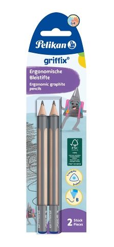 Tlusté griffixové tužky s dlouhým, symetrickým trojúhelníkovým tvarem úchopu, podobným štětcům griffix, zdokonalují myšlenku psacího systému griffix: zóna úchopu pro leváky i praváky. Kvalitní olovo o tloušťce 3,5 mm zaručuje dobrou aplikaci grafitu i při malém tlaku. Stupeň tvrdosti HB je všestranný mezi tužkami a je vhodný pro všechny aplikace. Tužky jsou dlouhé 140mm - určené pro malé dětské ručičky.