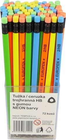 Klasické dřevěné trojhranné grafitové tužky s lakovaným povrchem v neonových barvách.