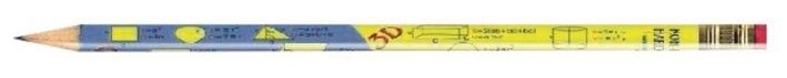 Grafitové tužky s kulatým profilem, grafitovou tuhou střední tvrdosti s potiskem matematických vzorečků a gumou konci.