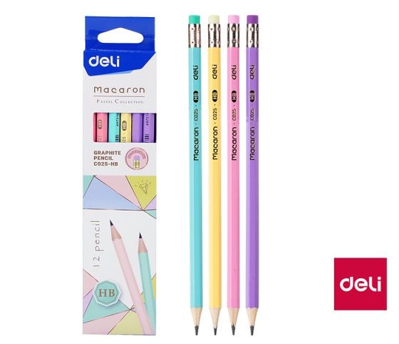 Tužka HB s gumou šestihranná MACARON DELI EC025-HB mix