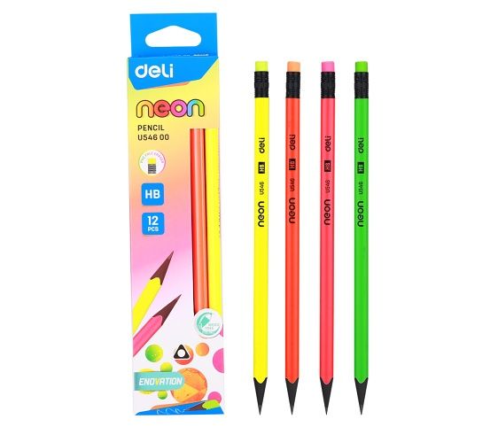 Tužka HB s gumou trojhranná NEON BLACK DELI EU54600 mix