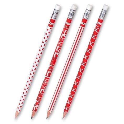 Dřevěná tužka s ergonomickým trojhranným tělem s pryží. Tvrdost HB. Červeno/bílá edice s gumou.
