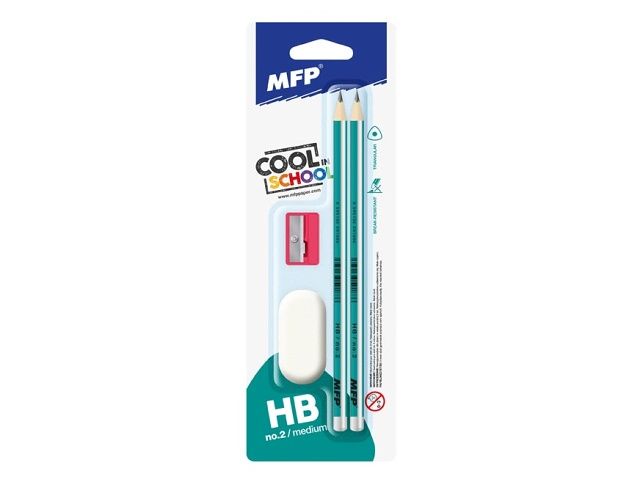Tužka M set 2 triangular 2xč.2+guma + ořezávátko