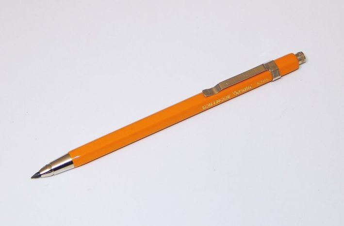 Tužka mechanická 2,5 5205 žlutá. Tužka mechanická padací kovová je určena pro běžné psaní a kreslení tuhou pr. 2,5 mm. Tuha se posunuje stisknutím knoflíku hrotítka v nakloněné poloze tužky, tím dojde k otevření kleštiny a vysunutí tuhy dle potřeby. Tuhu lze hrotit po odšroubování knoflíku,v němž je hrotítko. Plášť tužky má šestihranný profil 0K8 lakovaný žlutou barvou. Tužka nemá klip. Balení je skupinové, 20 ks tužek volně vložených do kartonové krabičky.