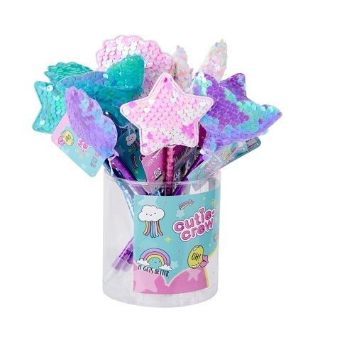 Ponoř se do kouzelného světa pod mořskou hladinou s Cutie Crew Pen Mermaid Sequins, okouzlující sadou tří tužek, které podpoří představivost malých umělců! Každá tužka má hravý flitrový vršek, hvězdu, mořský ocas nebo mušličku – ve čtyřech zářivých barvách, takže celkem vzniká dvanáct sběratelských tužek, které potěší každou malou mořskou vílu či mořského dobrodruha.Ať už děti píší příběhy o podmořských dobrodružstvích, kreslí barevná mořská zvířátka, nebo jen sní o životě pod hladinou, tyto tužky podněcují kreativitu a objevování. Díky fascinujícím flitrům a roztomilým designům jsou perfektním doplňkem pro malé fantazijní světy.S Cutie Crew Pen Mermaid Sequin se představivost tvého dítěte vydá na vzrušující cestu, poklad plný inspirace pro mladé umělce.