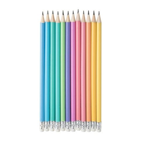 Sada 36 ks tužek HB s gumou v pastelových barvách.