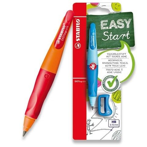 Vyměnitelné extra silné HB tuhy. Ořezávátko EASY ergo., Mechanická tužka STABILOEASYergo je doplněk rolleru STABILO EASYoriginal, který píše jako plnící pero.