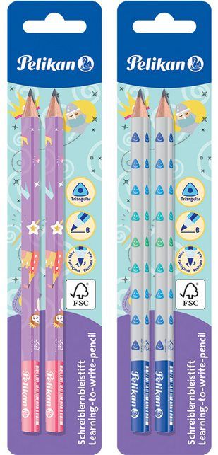 Tužka trojhranná silná Pelikan Jumbo 2ks, tvrdost tuhy B, ergonomická, lesní certifikace FSC, design v modré a růžové barvě, na blistru