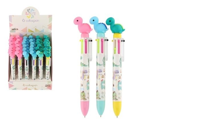Tužka/pero dinosaurus 6 barev 17 cm plast 4 barvy