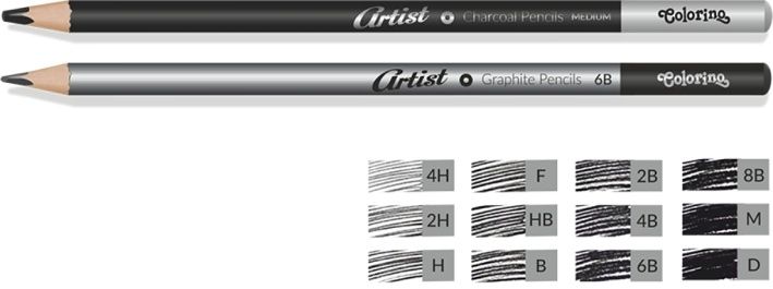 Sada dřevěných grafitových tužek a kreslicích uhlů vysoké kvality pro kreslení a skicování.