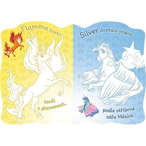 Omalovánky obsahují 24 originálně tvarovaných stran s barevnou předlohou a 50 samolepek k ozdobení.